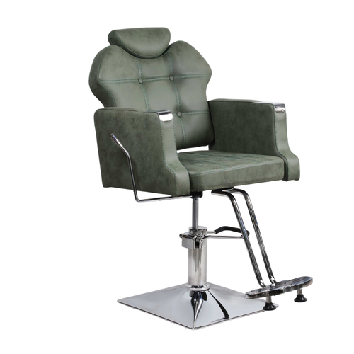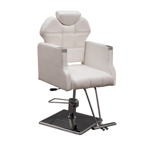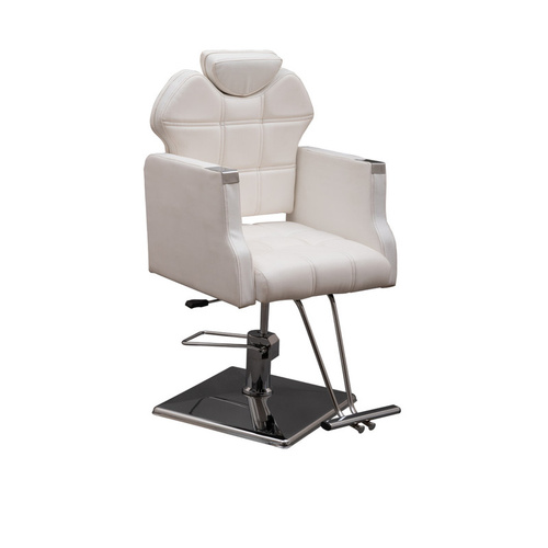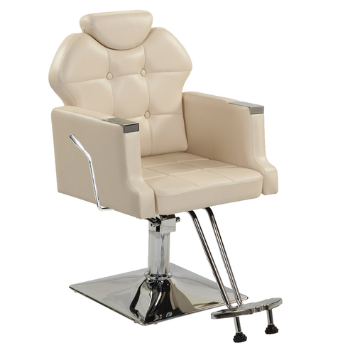 تکیه گاه این صندلی متحرک و این صندلی جکدار پدالی می باشد. روکش بکار رفته در این محصول از نوع چرم با کیفیت و در رنگبندی های سفید و طلایی و مشکی می باشد. فوم بکار رفته در کف این صندلی فوم با کیفیت و مقاوم در برابر تغییرات ناشی از وزن بالا می باشد. استفاده از پایه ثابت ( سینی ) جهت حفظ تمرکز آرایشگر و جلوگیری از حرکت صندلی هنگام ارائه خدمات .